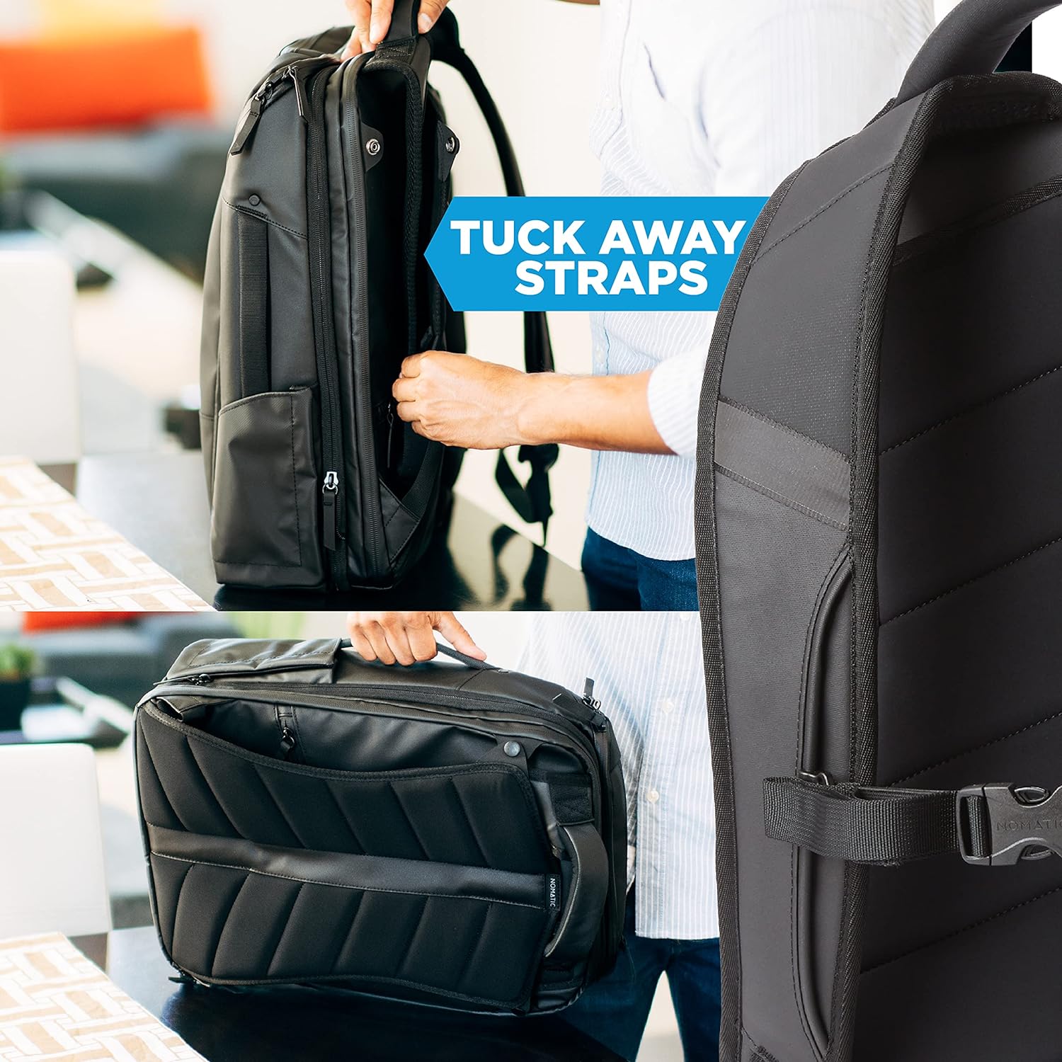 When you’re not carrying it, simply tuck away the straps for easy storage. Need extra space? The expandable capacity of the pack allows for additional storage options. With its ergonomic design, the Nomatic Travel Pack is the perfect companion for your adventures.